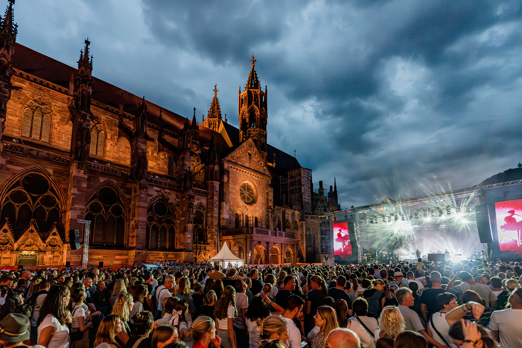 From Breisach to Tunisee, our festival summer reached its crowning conclusion in the heart of Freiburg at the end of August. The Münsterplatz concerts wrapped up the season with an eclectic program spanning classical music, techno, and pop. Some dedicated fans arrived early in the morning, staking out spots between market stalls to secure front-row seats for Wincent Weiss. By evening, 5,500 attendees filled the square in front of Freiburg Minster (Cathedral), creating an electric atmosphere under its towering presence. The band Provinz drew thousands of spectators as well, while tickets for German Italo-pop sensation Roy Bianco & Die Abbrunzati Boys sold out long before their performance.